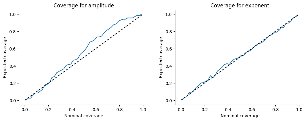 For a perfectly calibrated posterior estimator, empirical coverage = nominal coverage for all credibility levels.